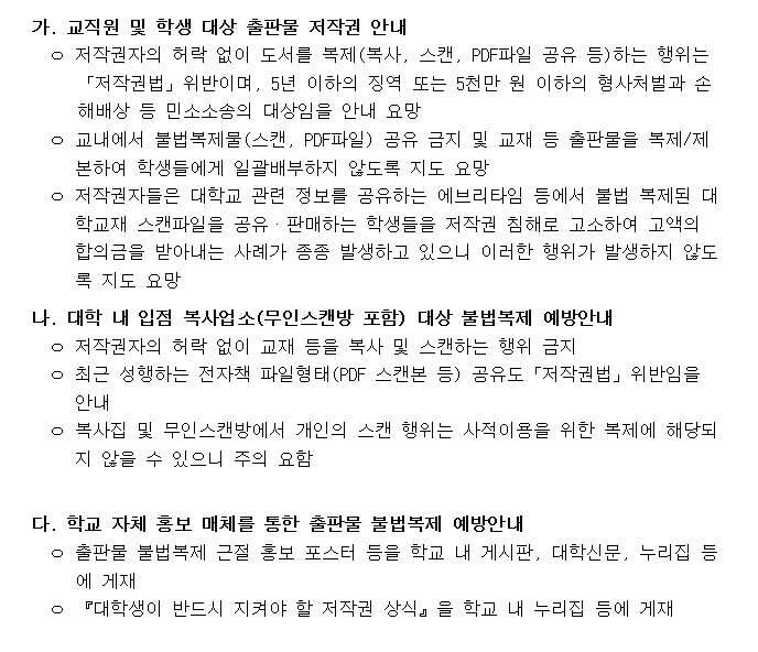대학가 신학기 출판물 불법복제 예방활동